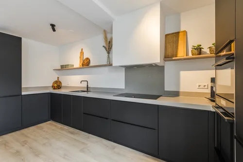 Je komt binnen via een keurige hal met een vernieuwde meterkast (12 groepen, 3 aardlekschakelaars). Er is een trapkast en modern ingerichte toiletruimte. Zodra je de woonkamer binnenstapt, word je verrast door de ruimte en de afwerking. De pvc vloer met comfortabele vloerverwarming, de strak gestuukte wanden en plafonds, en de openslaande deuren naar de tuin geven deze leefruimte luxe en een sfeervol karakter. De moderne open keuken in praktische U-vormige opstelling is van alle gemakken voorzien, zoals een Quooker, een inductiekookplaat, een afzuigkap, een combi-oven, en stoomoven, een koelkast en vriezer en een handige grote apothekerskast met veel extra bergruimte. In deze keuken wordt koken écht een feestje!