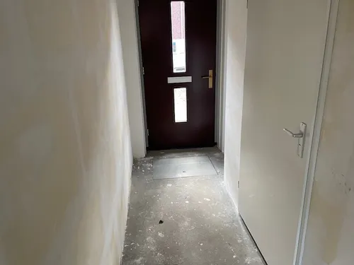 Overloop met trapopgang naar de 2e verdieping. Hier bevinden zich 3 ruime slaapkamers, waarvan 1 aan de voorzijde en 2 slaapkamers aan de achterzijde. De badkamer is voorzien van een douchehoek, een vaste wastafel met spiegel en planchet, handdoeken radiator en een 2e toilet.