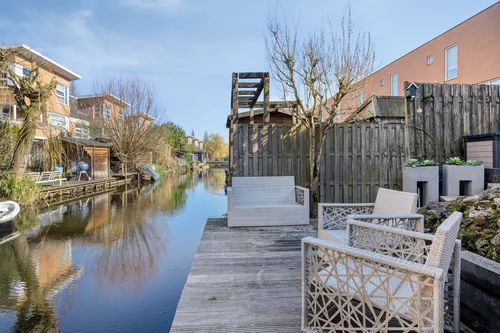 - Diepe achtertuin met prachtige ligging aan het water.