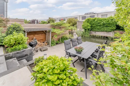 Zowel de voor- als achtertuin zijn met zorg en smaak aangelegd. De voortuin is onderhoudsarm en voorzien van sierbestrating en rondom groene borders. De achtertuin is werkelijk een oase van rust. De Tuin is gelegen aan het water en is aangelegd met niveauverschillen. Er zijn meerdere terrassen met grote tuintegels, verhoogde borders met verschillende bloemen en planten. En..... de sfeervolle veranda met terras aan het water, biedt een perfecte plek om gedurende het hele jaar door, van de tuin te genieten.