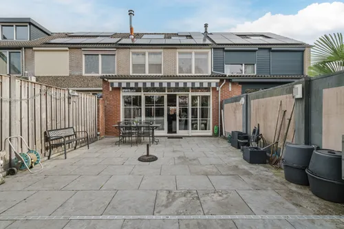 De onderhoudsvriendelijke achtertuin is fraai bestraat, voorzien van schuttingen voor privacy en een zonneluifel voor de warme dagen. In de serre met glazen pui en elektrische verwarming kun je het hele jaar door comfortabel zitten. Ook is er een aansluiting voor een laadpaal aanwezig – klaar voor de toekomst!