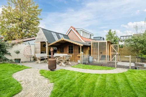 Direct achter het huis is er een aangelegde tuin met carport en een stenen schuur met een keukenblokje. Via het oprijpad dat naast en achter de woning doorloopt kom je bij een groot stuk grond van 263 m² met een grote garage, gazon en diverse terrassen. Deze tuin is bijzonder ruim en biedt volop mogelijkheden om te genieten van het buitenleven. Door de grootte van de tuin heb je altijd een plek in de zon én is het een waar paradijs voor kinderen om in te spelen en te ravotten! Bedenk wat je allemaal met zo'n grote tuin kan ...
