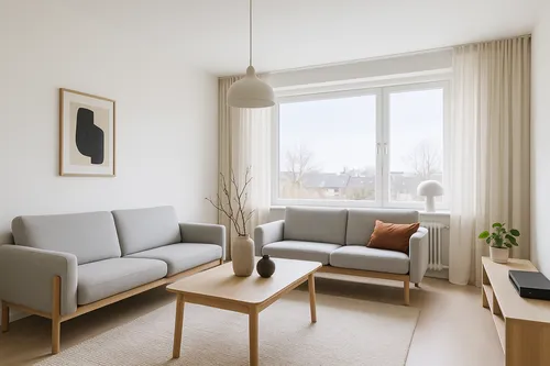 - Lichte woonkamer met grote ramen en toegang tot het balkon op het zuiden.