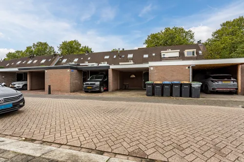 De zonnige en diepe achtertuin op het zuidoosten is een fijne plek om tot rust te komen of te genieten met familie en vrienden. De tuin is voorzien van een sfeervolle overkapping, een stenen berging en een carport met plek voor één auto, bereikbaar via de achterzijde.