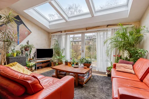 Uitgebouwde woonkamer met lichtstraat en dubbele schuifpui